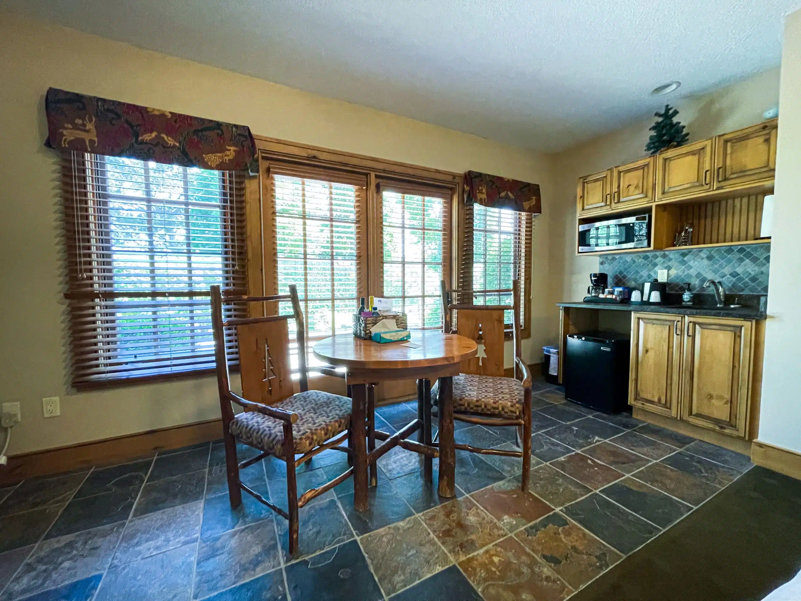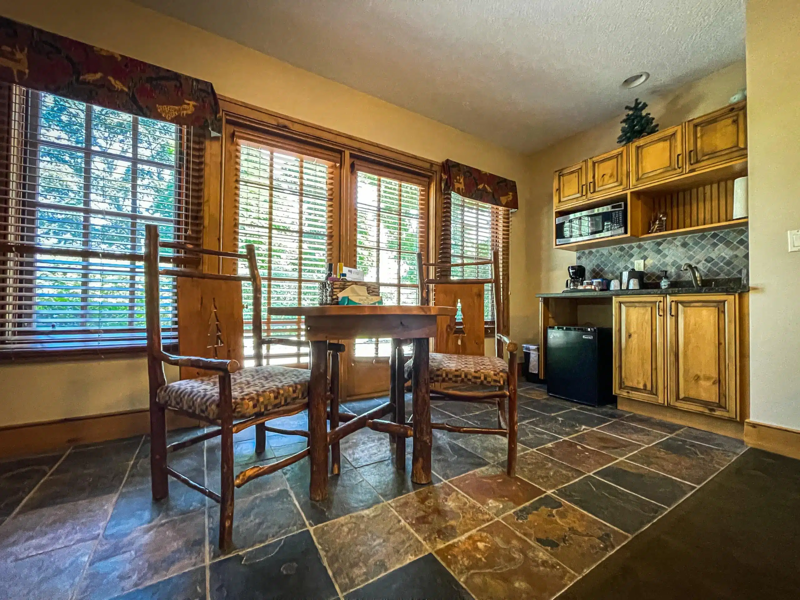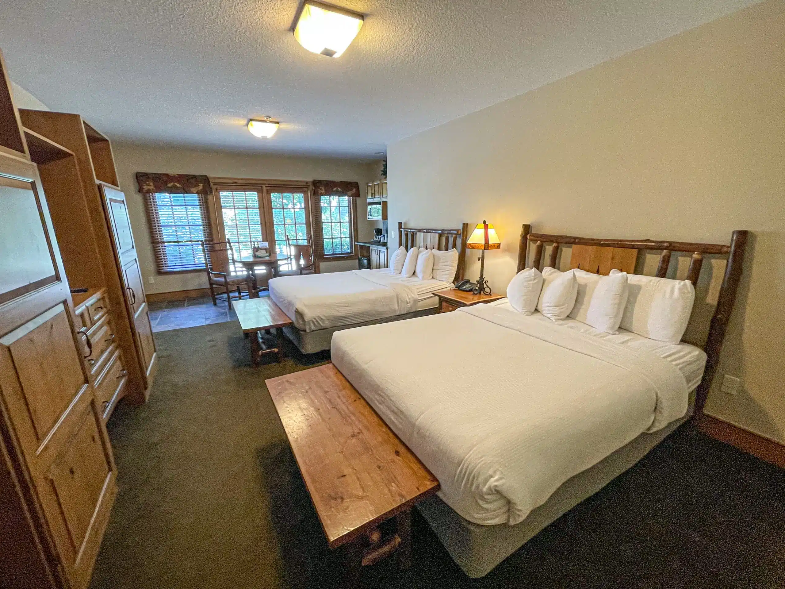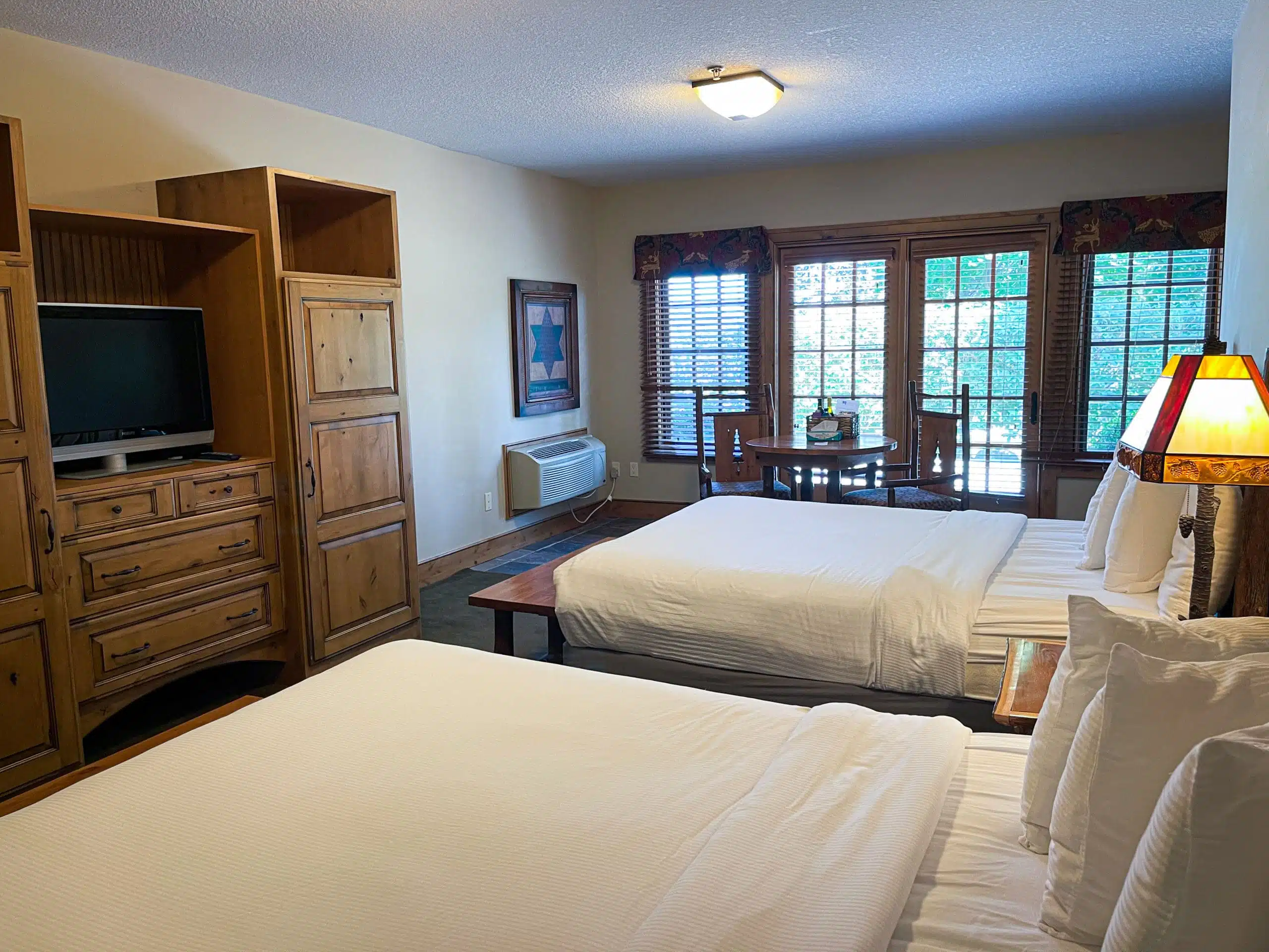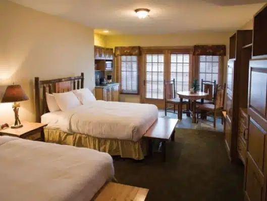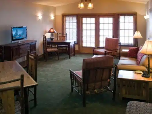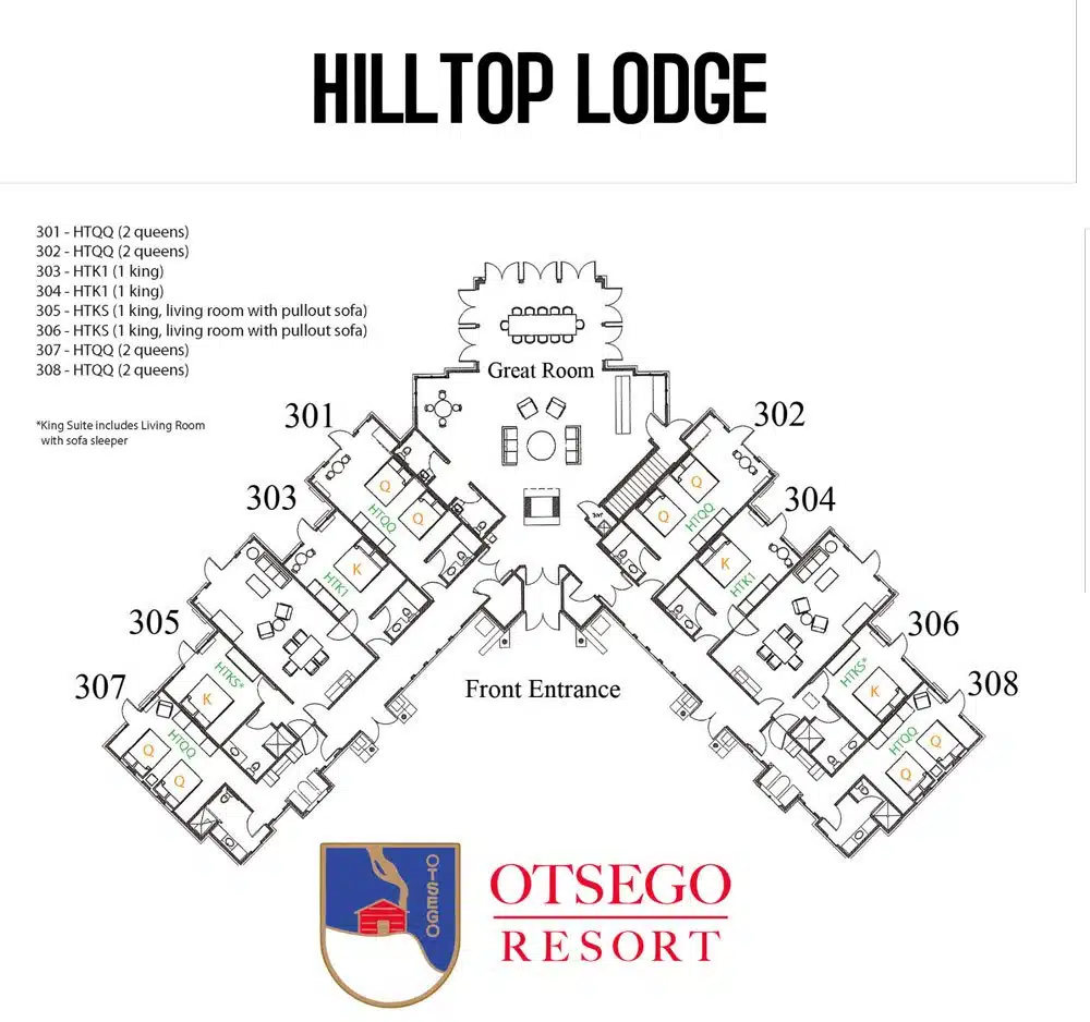 The amenities available at the Hilltop Lodge include spacious rooms equipped with high-speed internet, flat-screen TVs, and in-room coffee makers, ensuring a comfortable and enjoyable stay for all guests.