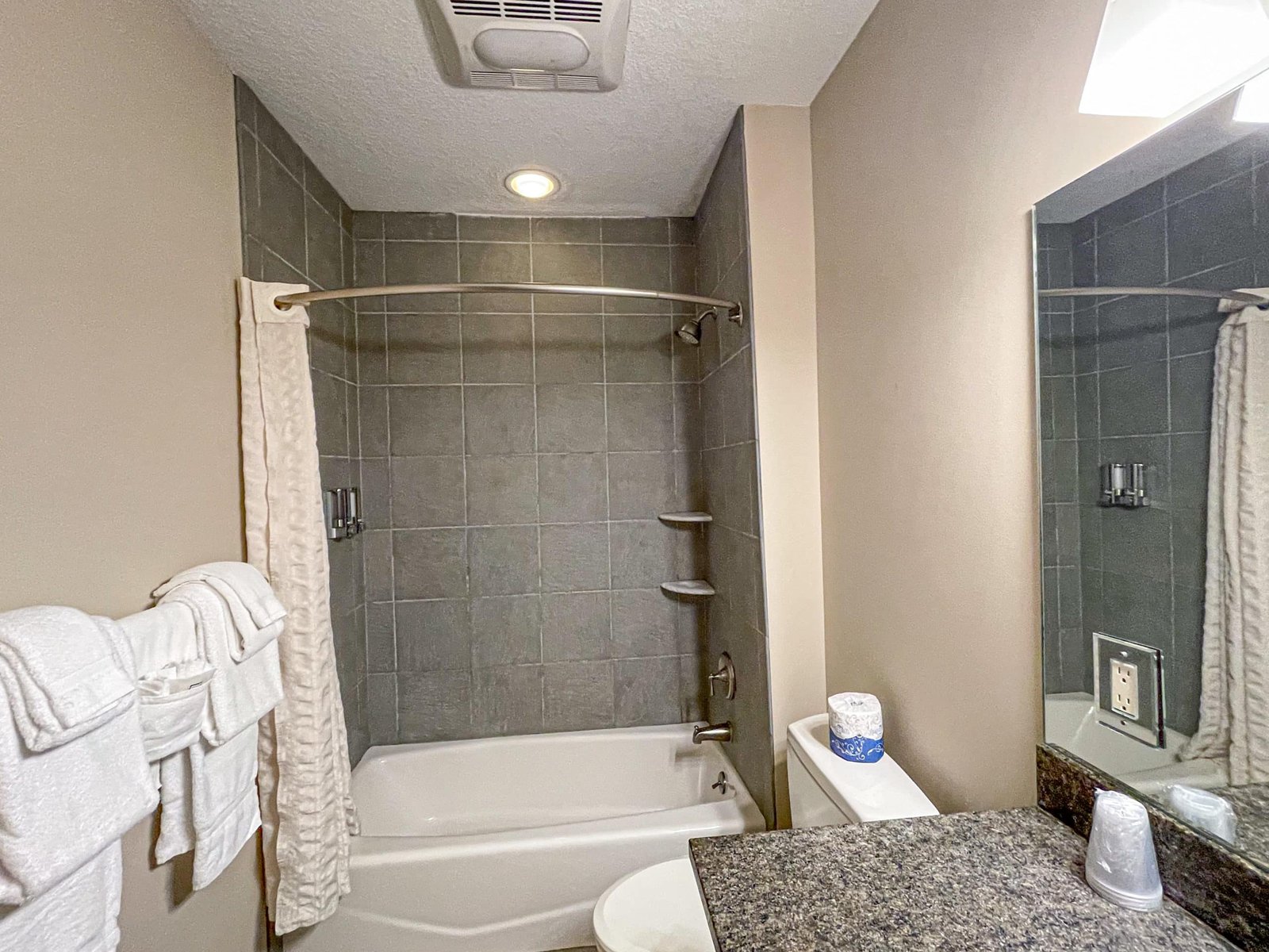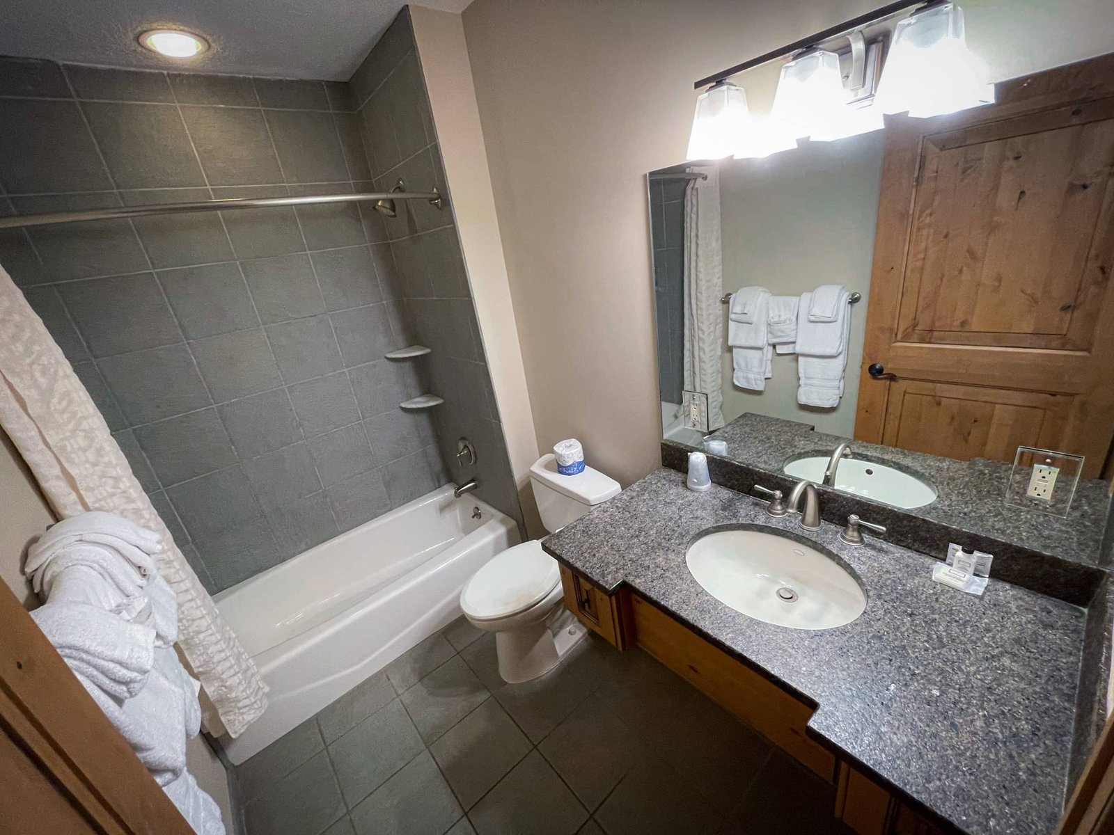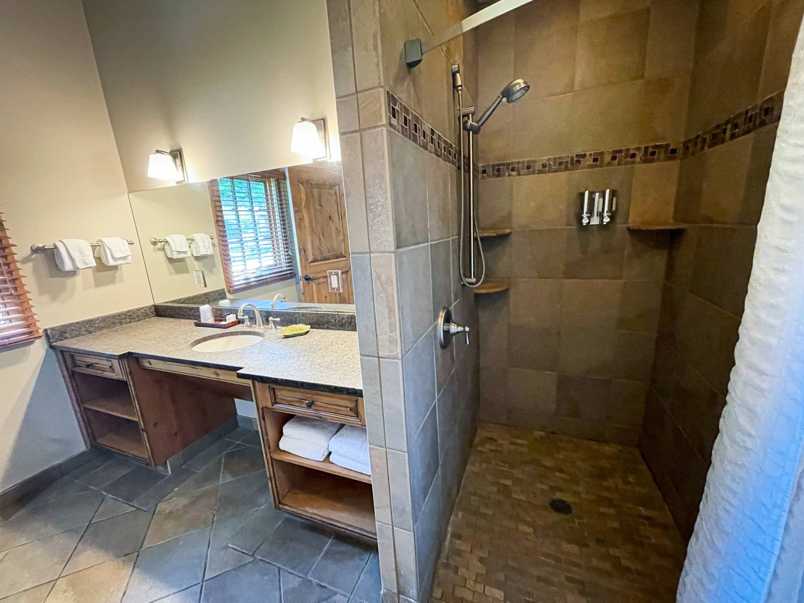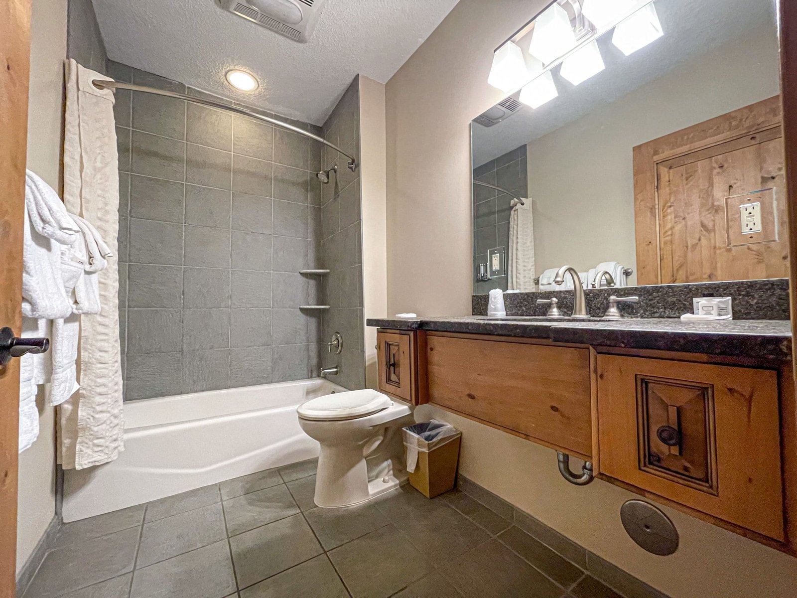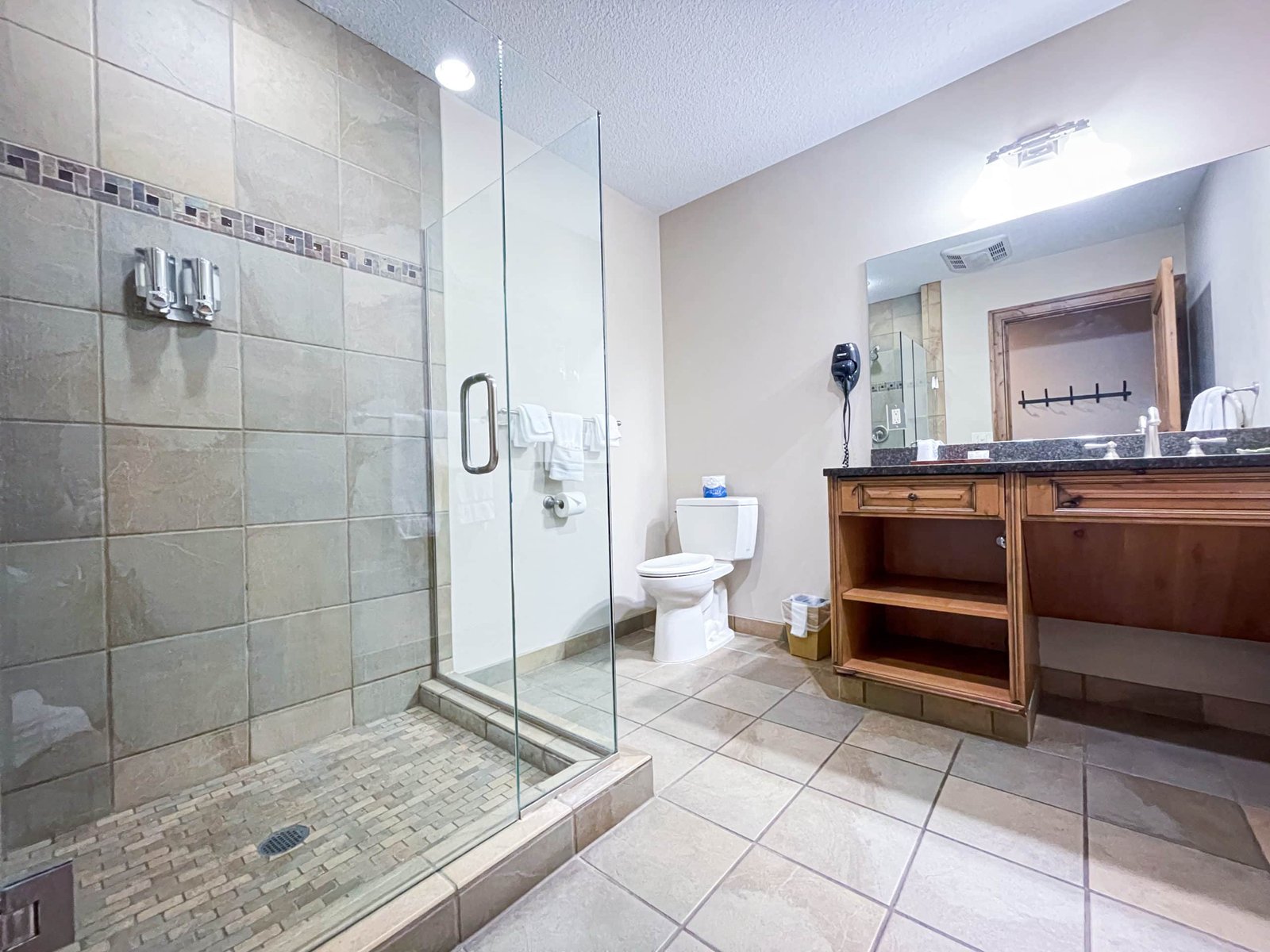 The spacious bathrooms feature either an oversized tub and/or a shower with soothing spa amenities.