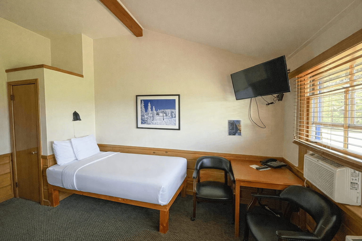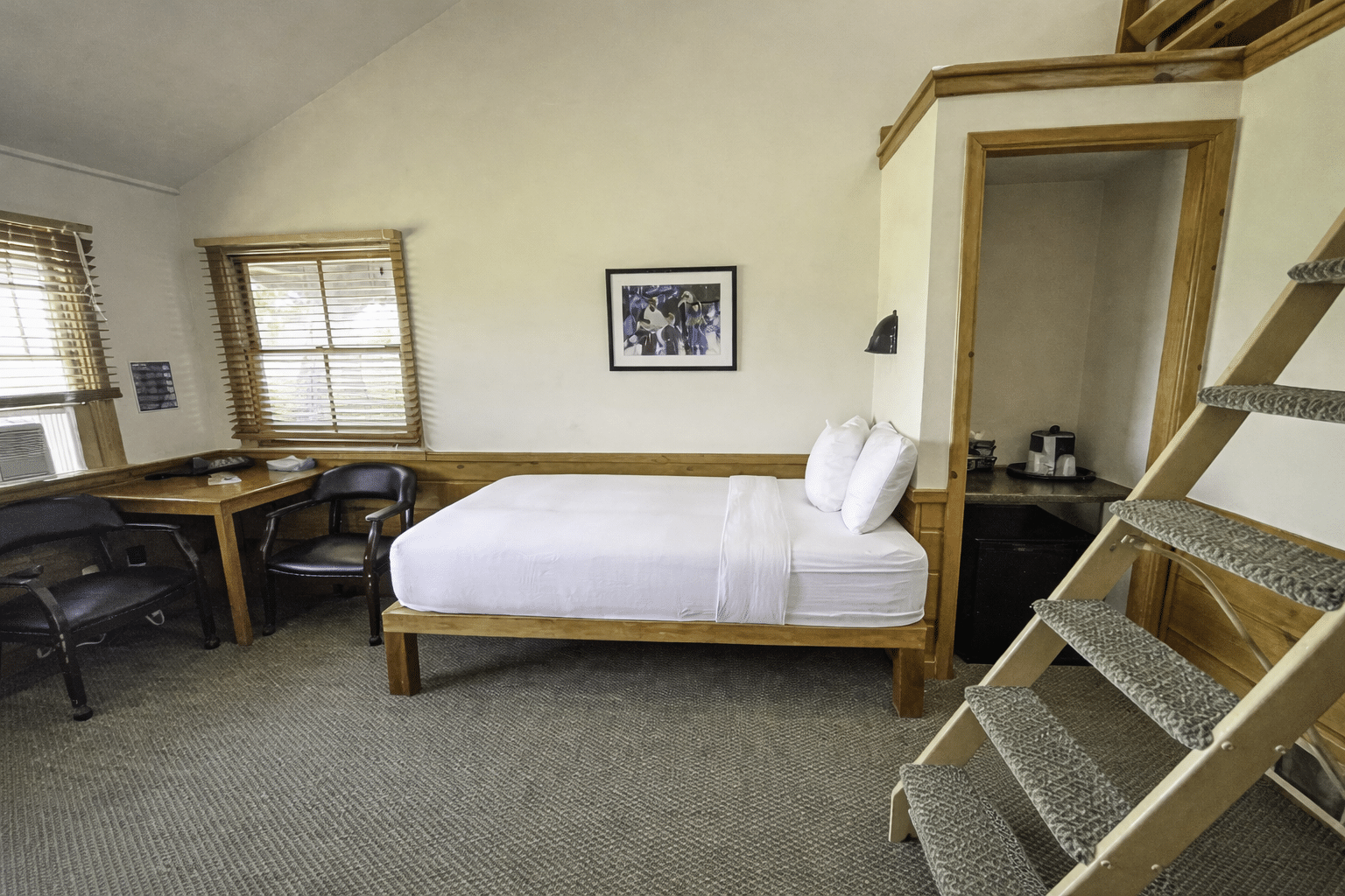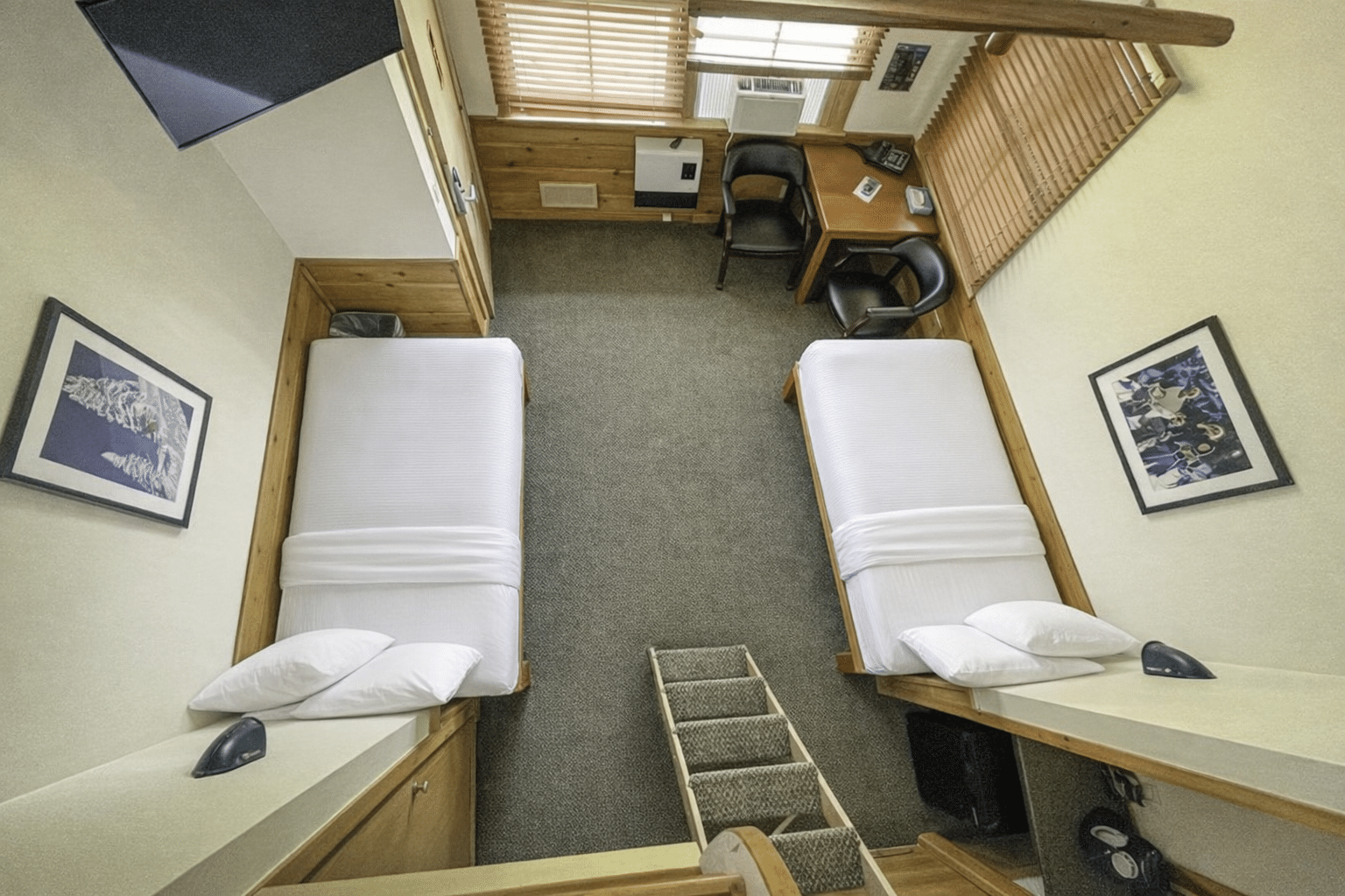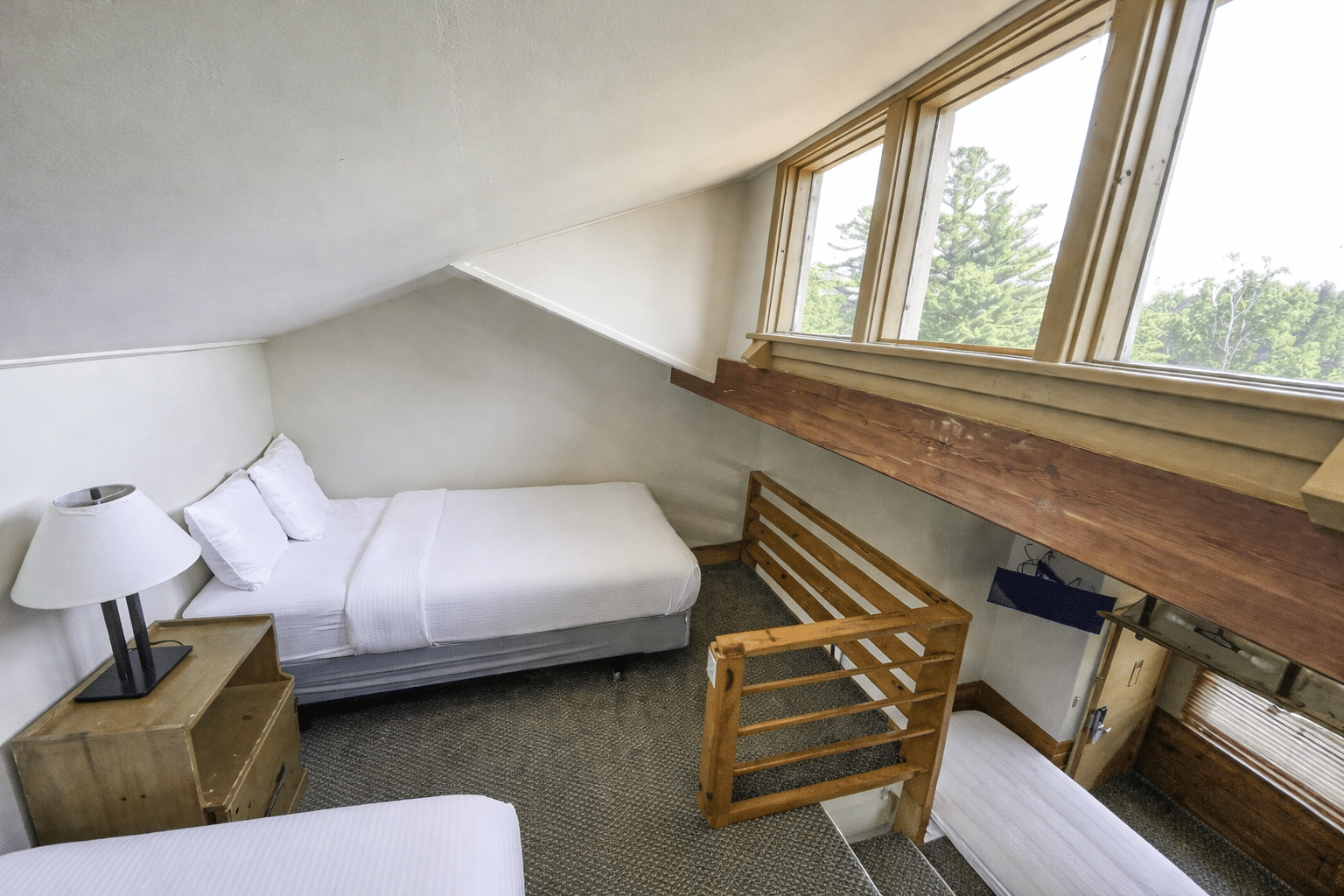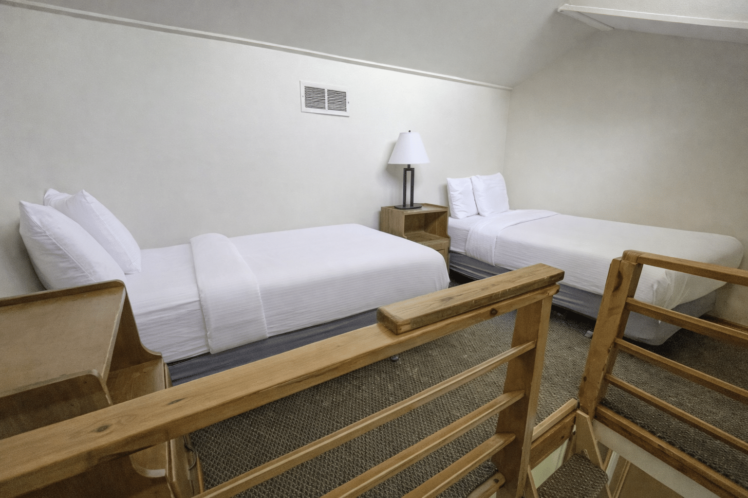 The room rate includes comfortable accommodations with twin beds, a full bath, free internet access, and cable TV for your convenience during your stay at the Loft Lodge.